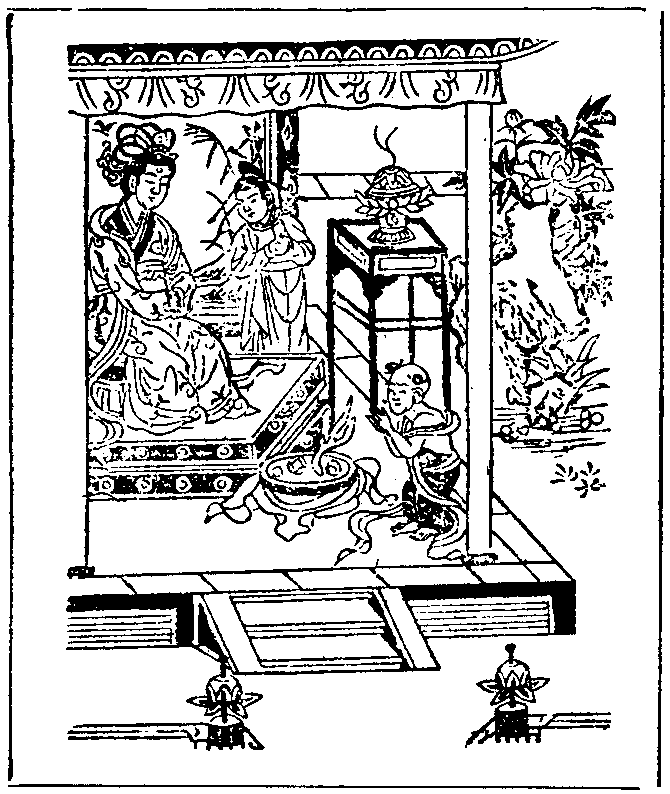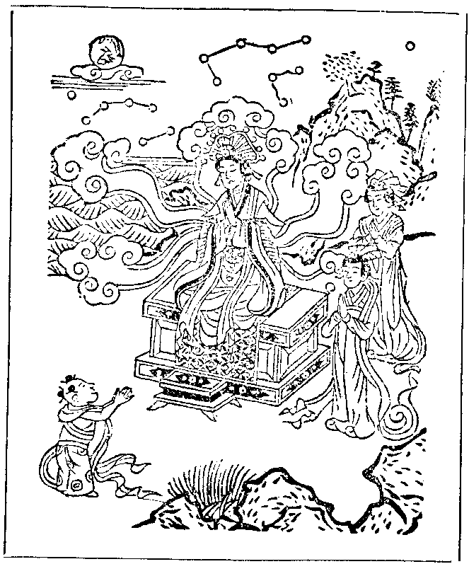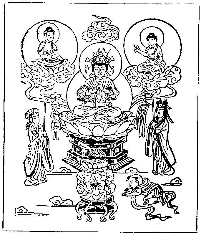 善财童子第四十二诣此世界中。参 佛母摩耶圣后。在大楼观坐宝莲华。色相端严威光显著。念念佛出生生为母。得大愿智幻生法门。