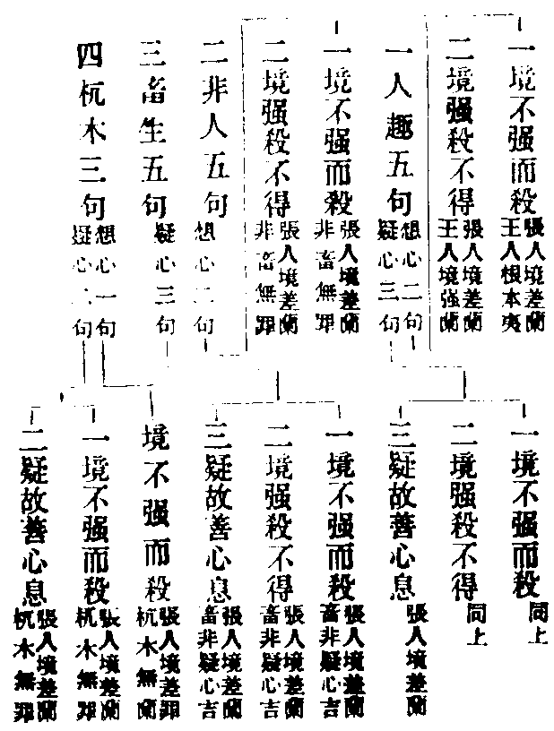 【疏】问如杀盗等论罪有无人非人想主无主想有何义故律判不定答大有意也或缘罪境人非人想故但结心罪或缘非罪境有主无想故然彼迷心并不结犯皆约前心方便为言。